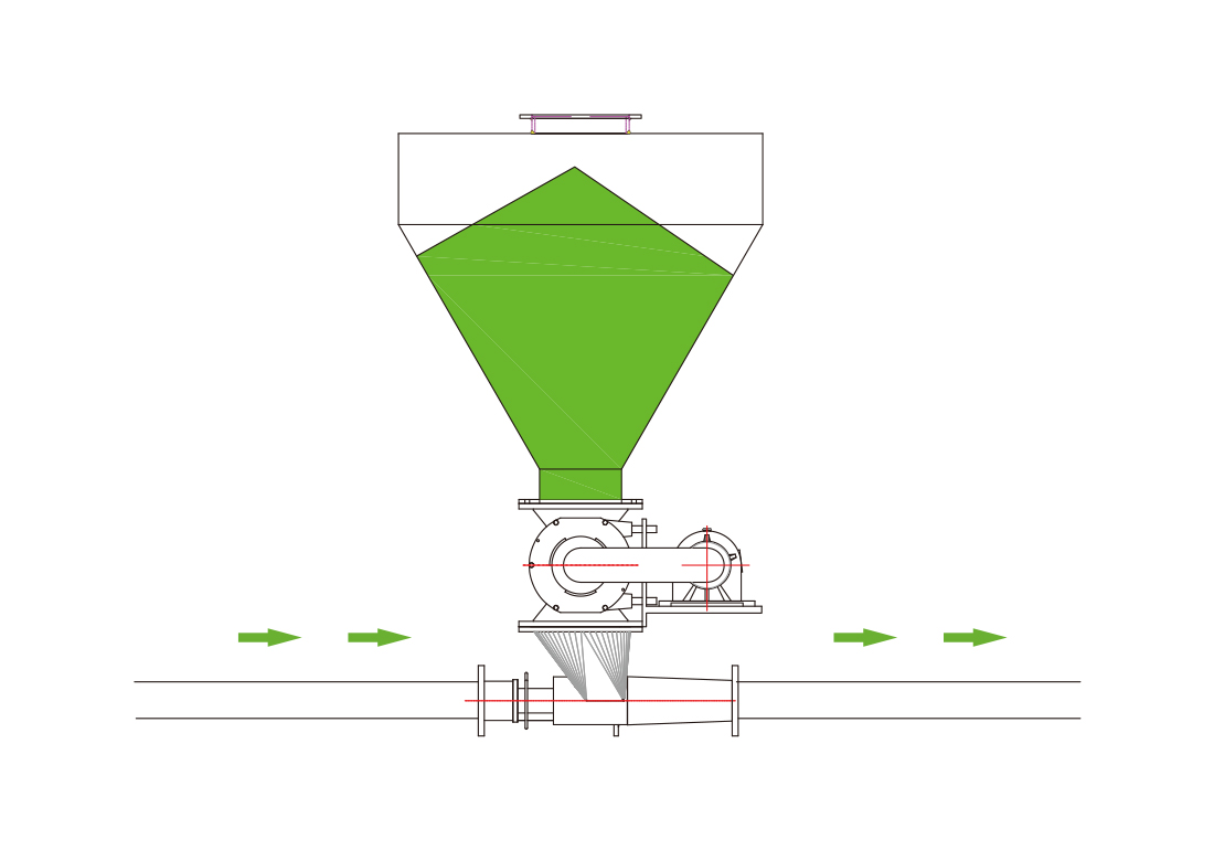 該輸送方式進料口壓力可調節,結構簡單,維修方便;易損件少,更換方便;一次性投資??;無機械傳動件,可靠性高,不易堵管。