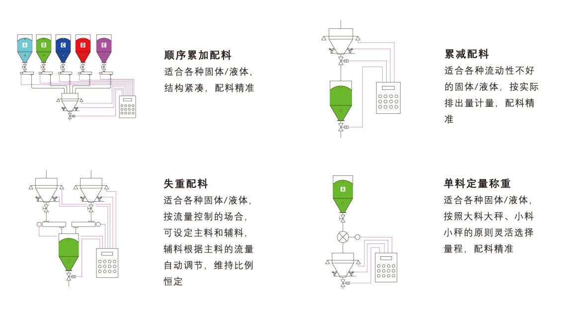 4、雙速或三速加料,自動順序配料;